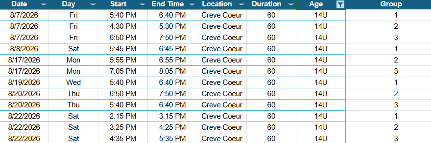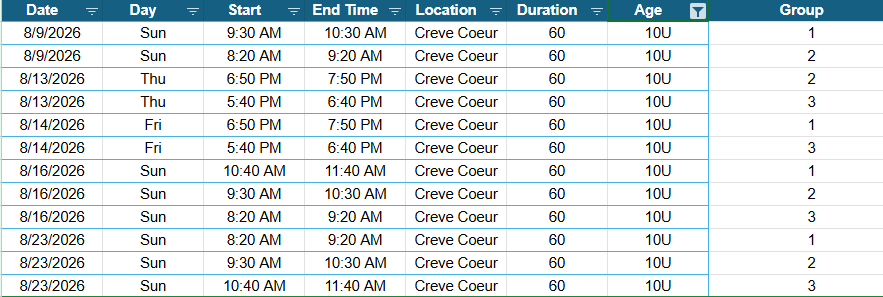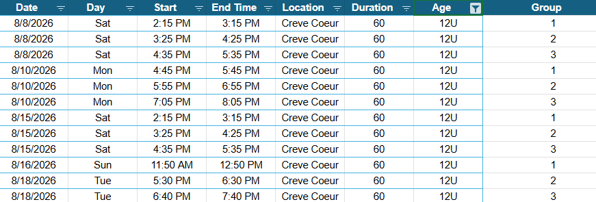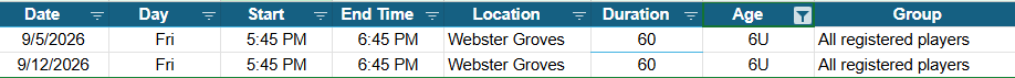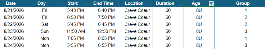 Please check below for the dates, time and location of the 2026-2027 Regular Season. Regular Season registration will open on July 1st.